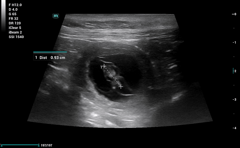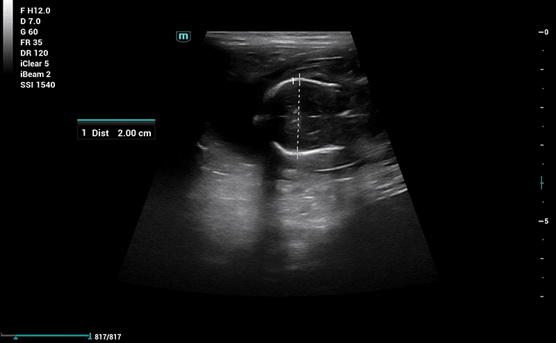 Måling af længde på foster i forbindelse med drægtighedsscanning.